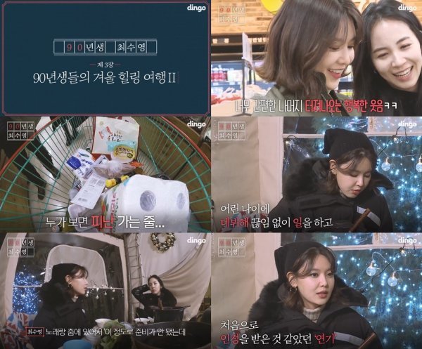 이날 공개될 ‘90년생 최수영’ 3화는 ‘90년생들의 겨울 힐링 여행 2’로 꾸며진다. 수영은 지난회에 이어 함께 연습생 생활을 하며 돈독한 우정을 쌓았던 동갑내기 친구 스텔라와의 글램핑 여행기를 펼쳐 이목을 집중시킬 예정이다.