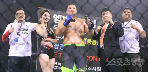 20일 오후 서울 강서구 화곡동 KBS 아레나홀에서 진행된 글리몬FC 02(GFC 02) 노바매치 김수동과 이호재의 헤비급 1경기에서 이호재가 판정승을 거뒀다. 경기 후 이호재가 트로피를 들고 포즈를 취하고 있다.