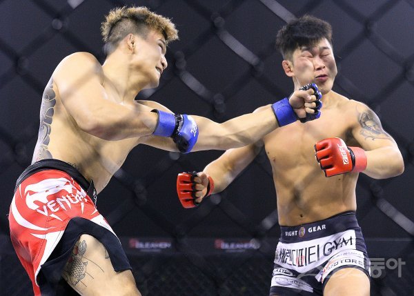 20일 오후 서울 강서구 화곡동 KBS 아레나홀에서 열린 글리몬FC 02(GFC 02) 메인매치 홍성호와 이성종의 라이트급 3경기에서 이성종이 홍성호에게 강력한 펀치를 때리고 있다.