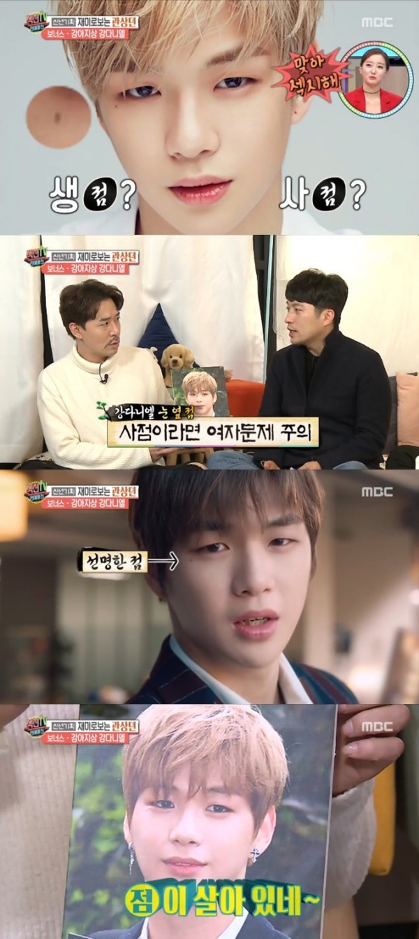 이날 관상가는 강다니엘의 눈 밑에 난 점에 대해 “생(生)점이냐 사(死)점이냐에 따라 다르다”고 말했다. 그는 “사점이라면 여자 문제에 대해 조심해야 한다. 생점이면 사람을 끌어들이는 점이니 대중의 인기를 먹고 사는 연예인에게 좋은 점”이라고 말했다. 관상가는 흐릿하게 퍼진 점이 사점이라고 설명했다.