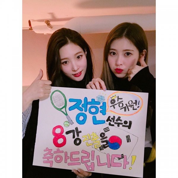 22일 정채연과 예빈은 각각 인스타그램를 통해 깜찍한 응원그림과 함께 엄지를 치켜 든 사진을 공개하며 정현 선수의 8강 진출을 응원했다.