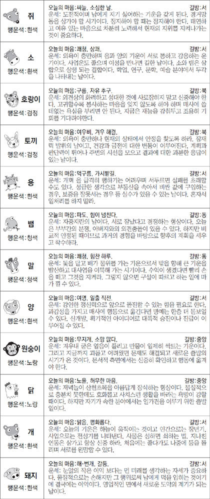 ▲ 오늘의 운세 도표. 스포츠동아