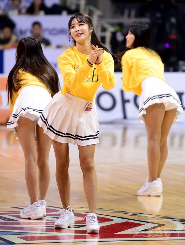 23일 경기도 안양실내체육관에서 열린 ‘2017-2018 정관장 프로농구’ 안양 KGC와 인천 전자랜드의 경기에서 KGC 치어리더가 화려한 공연을 선보이고 있다.