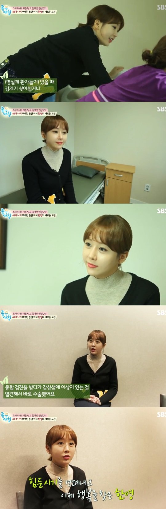 한영은 이날 방송에서 과거 갑상샘암을 진단 받았었다고 말했다. 다행히 지금은 병을 극복하고 다양한 활동을 하며 지내고 있는 것으로 전해졌지만 투병 당시에는 정말 고통스러웠다고 말했다.