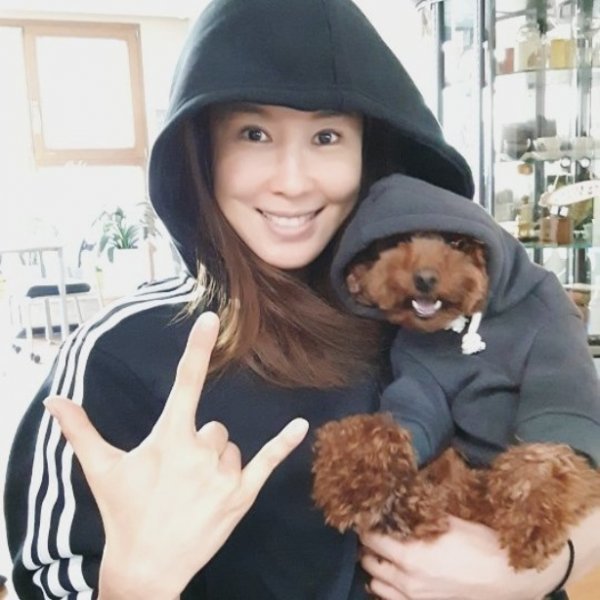 이태란은 25일 자신의 SNS에 "추워 yo~! 따뜻하게 입고 다니세 yo~! yoyoyo~~ #반려견 #멍멍이체리"라는 글과 함께 사진 두 장을 공개했다.