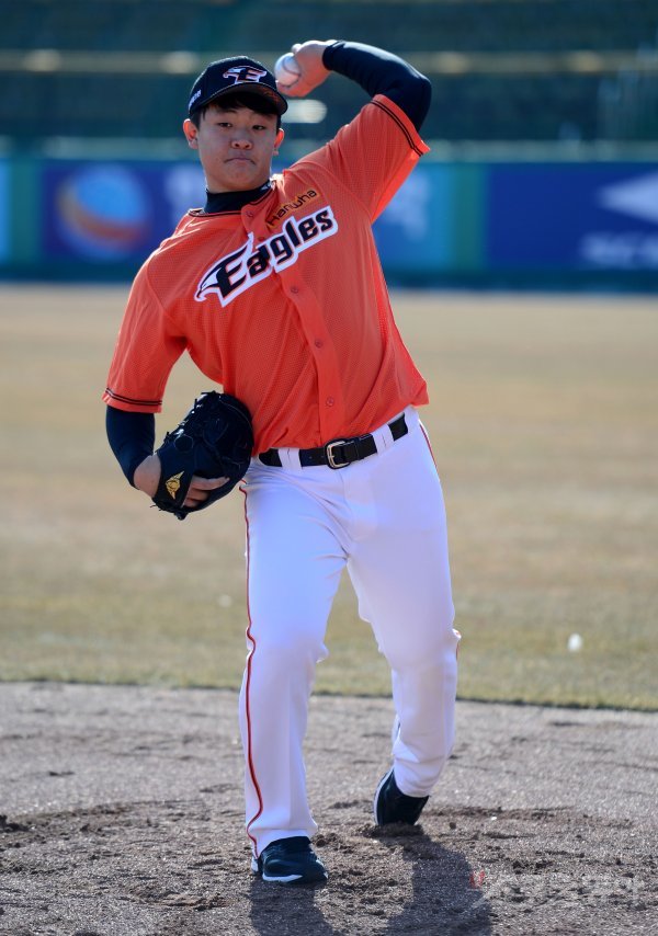 29일 대전 한화생명 이글스파크에서 ‘2018 한화 포토데이’가 열렸다. 한화 2차 1라운드 이승관이 카메라를 향해 포즈를 취하고 있다.
