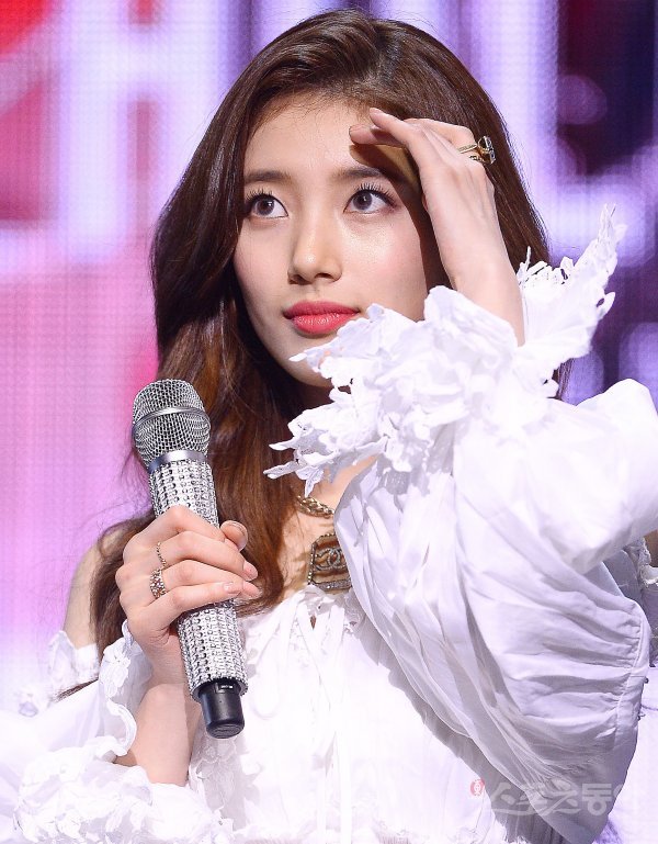 가수 수지가 29일 서울 광진구 예스24 라이브홀에서 열린 미니 2집 ‘페이시스 오브 러브(Faces of Love)’ 발매 기념 쇼케이스에서 취재진의 질문을 듣고 있다.
