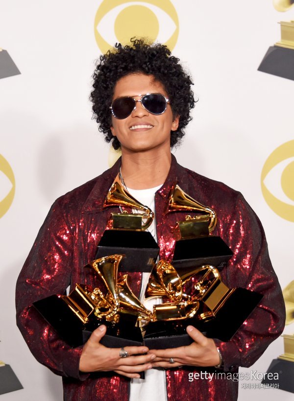 그래미 어워즈의 주인공 브루노 마스. 3대 주요 부문을 포함해 7관왕에 올랐다. 사진=게티이미지코리아