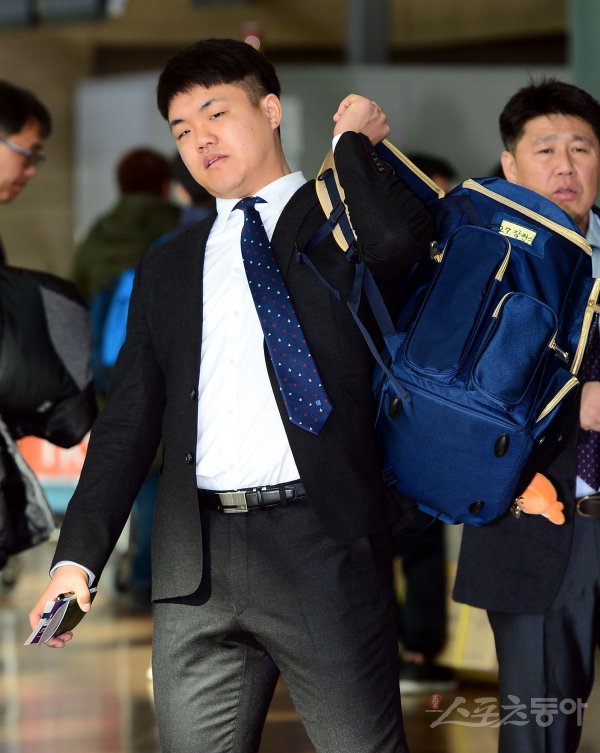 장현식이 출국을 앞두고 짐을 옮기고 있다.
