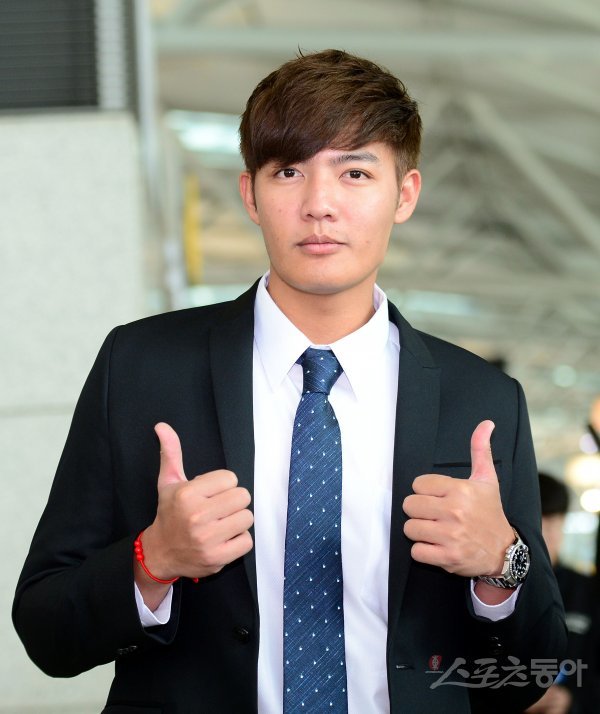 출국에 앞서 대만 출신 왕웨이중이 카메라를 향해 포즈를 취하고 있다.