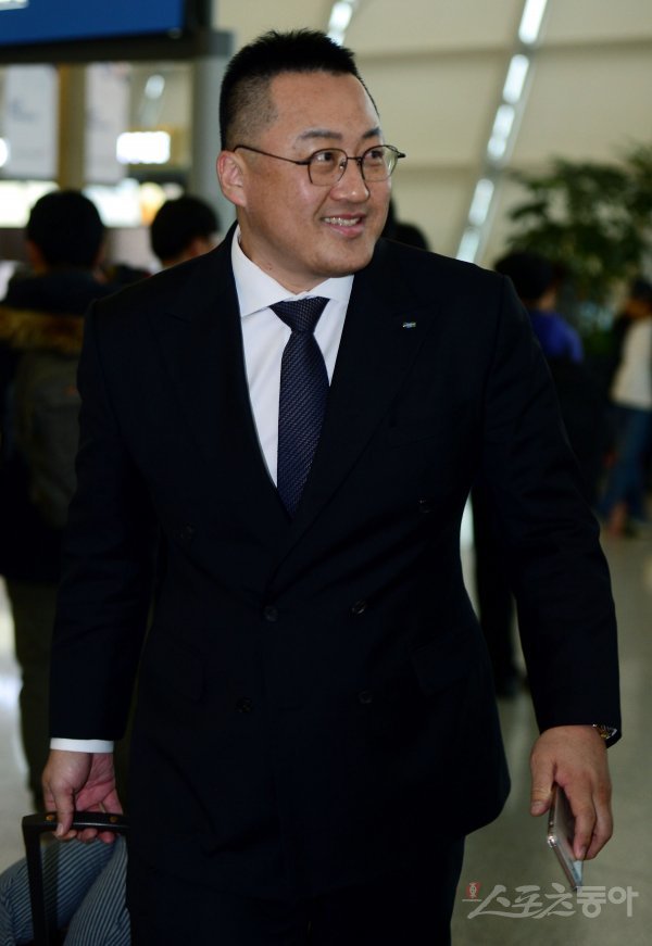 프로야구 두산 베어스가 30일 인천국제공항을 통해 전지훈련지인 호주 시드니로 출국했다. 조인성 코치가 출국을 앞두고 환한 미소를 짓고 있다.
