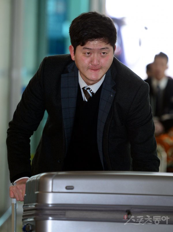 프로야구 두산 베어스가 30일 인천국제공항을 통해 전지훈련지인 호주 시드니로 출국했다. 장민익이 출국을 앞두고 짐을 옮기고 있다.