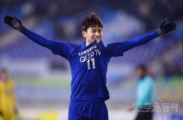 30일 수원월드컵경기장에서 2018 AFC 챔피언스리그 플레이오프 수원삼성과 탄호아(베트남)의 경기가 열렸다. 전반 수원삼성 임상협이 추가골을 넣은 후 환호하고 있다.
