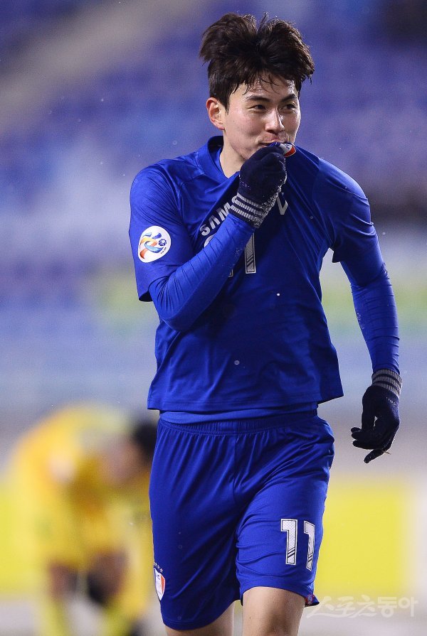 30일 수원월드컵경기장에서 2018 AFC 챔피언스리그 플레이오프 수원삼성과 탄호아(베트남)의 경기가 열렸다. 전반 수원삼성 임상협이 추가골을 넣은 후 환호하고 있다.