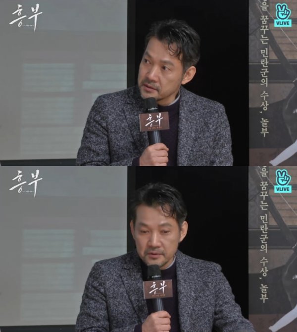 영화 ‘흥부’에서 조혁과 대립되는 인물로 조선을 가지려는 야심가이자 흥부전 속 놀부의 실제 주인공을 맡은 정진영. 그는 30일 네이버 V앱을 통해 생중계된 영화 ‘흥부’ 무비토크 라이브에서 “최근 사회적이고 정치적인 사태에서 보여 진 인물들과 크게 다르지 않다”고 말했다. 그는 “그래서 연기할 때 편했다. 치읓(ㅊ) 기역(ㄱ) 이응(ㅇ)의 성을 가진 분들의 모습을 볼 수 있을 것”이라면서 “모델로 할 사람들이 있어서 연기에 많이 도움 받았다”고 밝혔다.