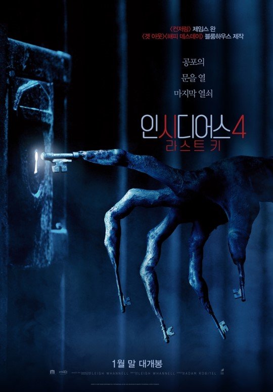 국내 개봉에 앞서 미국에서 개봉과 동시에 전미 박스오피스 1위, \'겟 아웃\'을 제친 오프닝 스코어로 저력을 보여준 \'인시디어스4: 라스트 키\'가 국내에서도 동시기 개봉 외화 예매율 1위는 물론, 시리즈 사상 최대의 오프닝 스코어를 기록, 흥행을 예고하고 있다. \'인시디어스4: 라스트 키\'는 영매 엘리스의 고향 뉴멕시코에서 펼쳐지는 이야기로 어린 시절 자신이 살던 집에서 벌어지는 정체불명의 사건을 파악하기 위해, 공포가 시작된 비밀의 문을 여는 하우스호러의 결정판.
