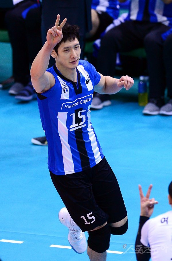31일 수원실내체육관에서 열린 ‘2017-18 도드람 V리그’ 남자부 현대캐피탈과 한국전력의 경기에서 현대캐피탈 문성민이 득점에 성공한 후 기뻐하고 있다.