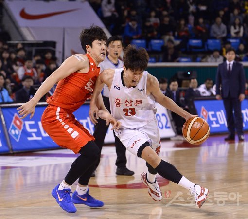 3일 잠실학생체육관에서 열린 ‘2017-2018 정관장 프로농구’ 안양 KGC와 서울 SK 경기에서 안양 KGC 전성현이 서울 SK 이현석의 마크를 피해 돌파를 하고 있다.