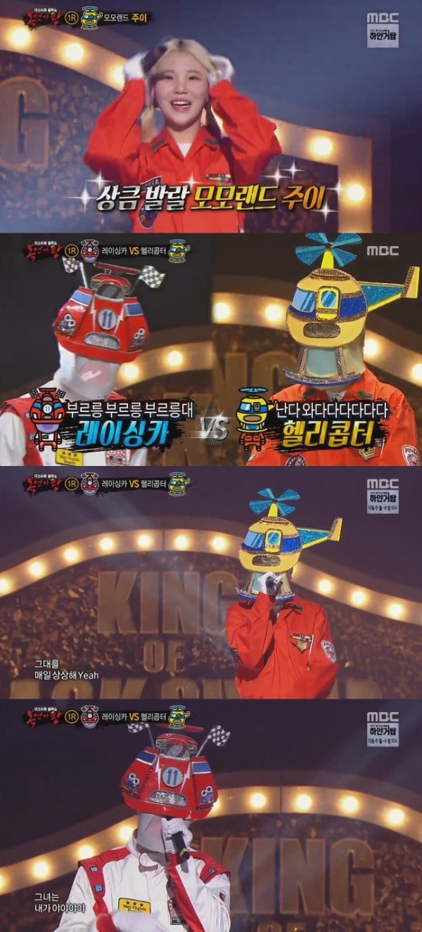 듀엣곡으로 김태우, 린의 ‘내가 야! 하면 넌 예!’를 부른 ‘레이싱카’와 ‘헬리콥터’는 완벽한 호흡으로 스튜디오를 가득 채웠다. 남다른 아쟁 모사와 댄스 실력으로 판정단들의 마음을 사로잡았지만 아쉽게 탈락한 ‘헬리콥터’의 정체는 ‘상큼돌’ 모모랜드의 흥부자 주이였다.