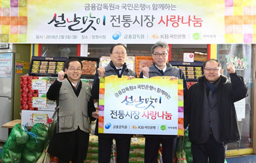 이는 설 명절을 앞두고 전통시장 활성화와 어려운 이웃에게 사랑을 전하기 위함으로, 금융감독원, 국제구호단체 기아대책과 함께했다. 전통시장 활성화와 내수경기 회복을 돕기 위해 전국적으로 실시하는 행사로, KB국민은행 27개 지역영업그룹과 지역별 전통시장을 연계해 2011년부터 매년 지속적으로 실시하고 있다. KB국민은행과 금융감독원이 공동으로 구매한 전통시장 온누리상품권으로 전통시장에서 다양한 식료품 및 생필품을 구매해 어려운 이웃 총 4500여 가구를 지원한다.