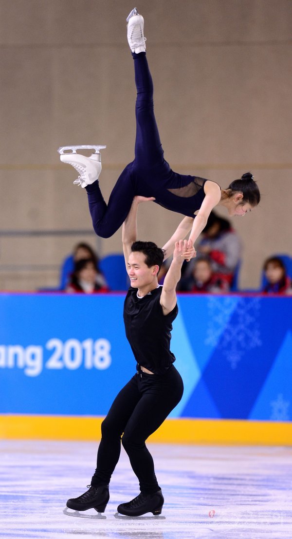 2018평창동계올림픽 피겨스케이팅 페어 부문에 출전하는 북한 렴대옥과 김주식이 5일 강원도 강릉 아이스 아레나에서 훈련을 하고 있다.