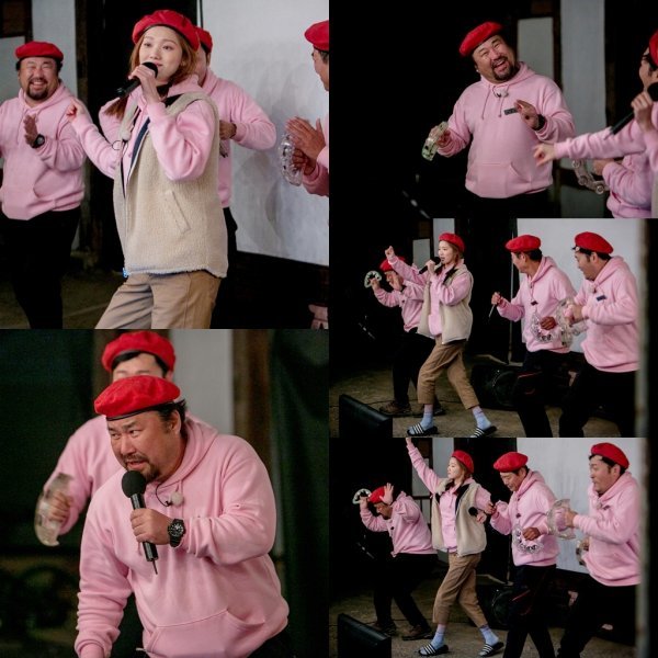 공개된 사진 속 네 사람은 분홍색 티셔츠에 빨간색 모자를 똑같이 맞춰 입고 주민들 앞에 나와 서있다. 손에 탬버린과 마이크를 든 네 사람은 나란히 서서 다이아몬드 스텝을 밟는 등 한껏 신난 모습이다. 특히 ‘고블리’ 고창석과 ‘재간둥이’ 이성경의 활약이 돋보인다.