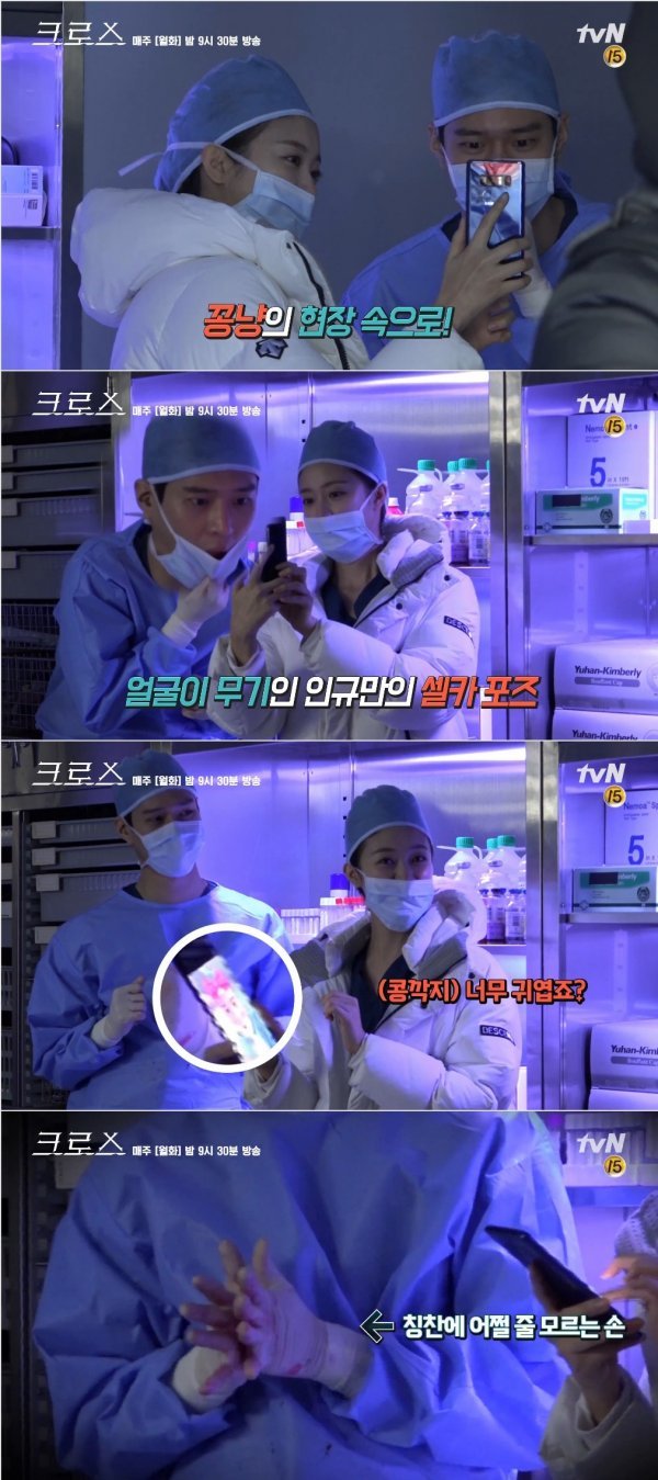 tvN 드라마 '크로스'측이 6일 네이버TV를 통해 인규(고경표 분)와 지인(전소민 분)의 모습이 담긴 현장 영상을 공개했다.