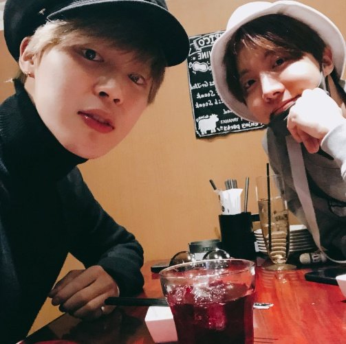 사진 속 지민과 제이홉은 다정한 모습으로 셀카를 찍고 있다. 함께 식사를 하러 간 것으로 보이는 지민과 제이홉은 훈훈한 외모로 팬들의 눈길을 끌었다.