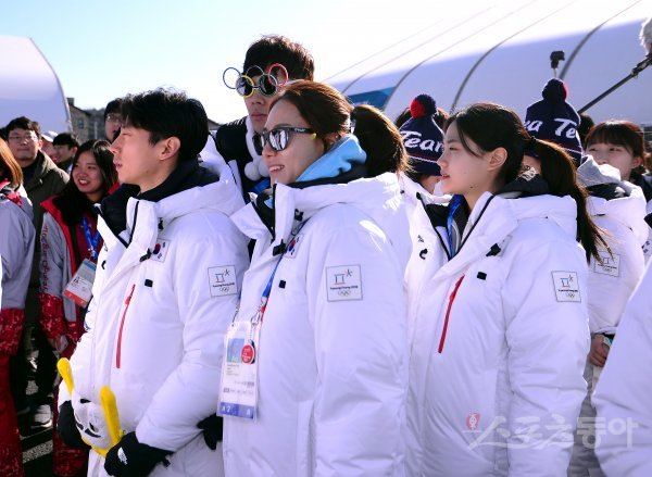 7일 강릉 올림픽선수촌에서 열린 대한민국 선수단 입촌식에서 스피드스케이팅 이상화가 행사장으로 들어가고 있다.