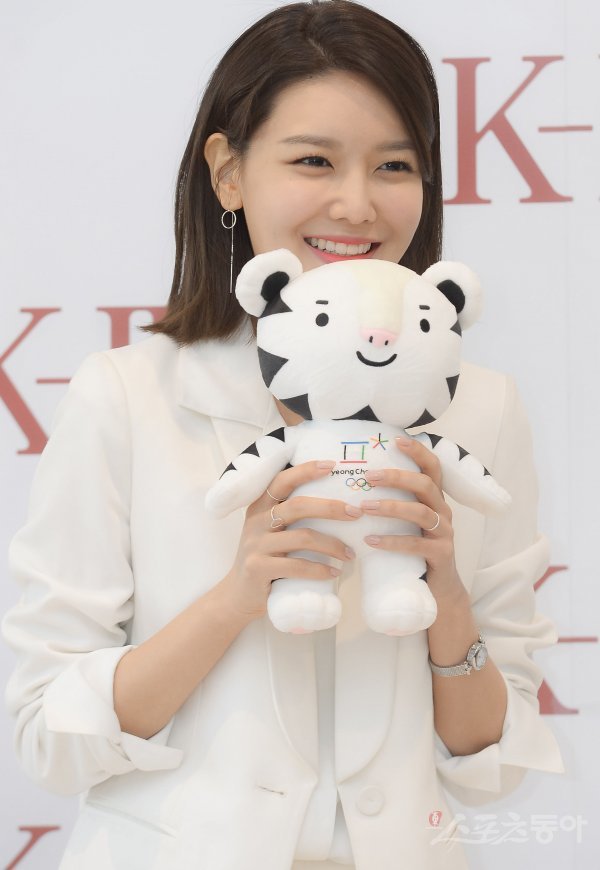가수 겸 배우 최수영이 7일 서울 송파구 롯데백화점 잠실점에서 열린 한 글로벌 프레스티지 스킨케어 브랜드의 2018 평창동계올림픽 리미티드 에디션 출시 기념 메가 이벤트 축하 행사에 참석해 올림픽 마스코트 수호랑 인형을 들고 포즈를 취하고 있다.