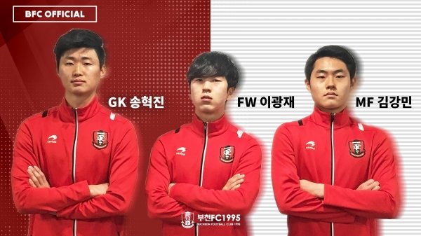 프로축구 K리그2 부천FC1995가 자유선발을 통해 신인선수 이광재(21), 송혁진(21), 김강민(20)을 영입했다.