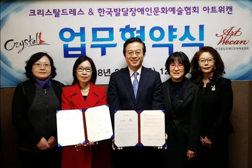 협약식에는 한국발달장애인문화예술협회 아트위캔의 강성만 회장, 왕소영 사무총장, 조성금, 김혜영, 조금자 홍보이사와 크리스탈드레스 강현주 대표 및 관계자들이 참석했다.
