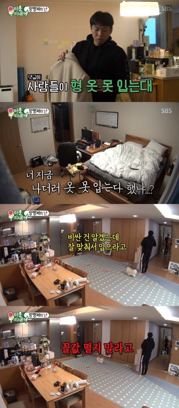 이후 양세찬은 “사람들이 댓글이 형이 옷을 잘 못 입는다고 하더라. 비싼 옷이니 잘 맞춰서 입고 다니라”며 잔소리를 했고 양세형은 이에 발끈하는 모습으로 웃음을 자아냈다.