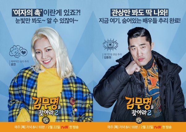 새로운 추리자들, 더욱 커진 스케일, 그리고 '김무명'의 열연과 함께 돌아온 잠입추리 버라이어티 ‘김무명을 찾아라2’는 22일 저녁 8시 10분에 첫방송된다.
