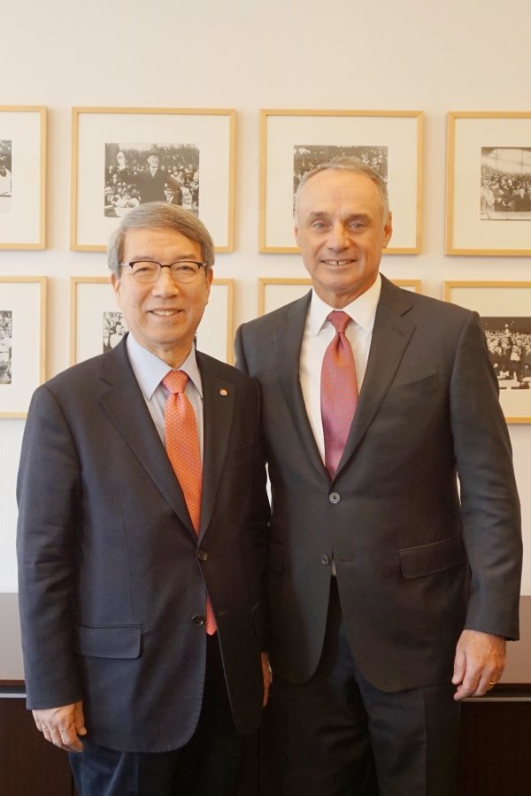 KBO 정운찬 총재가 14일(현지시간) 미국 뉴욕에서 메이저리그(MLB) 사무국을 방문해 롭 맨프레드 커미셔너와 만났다.