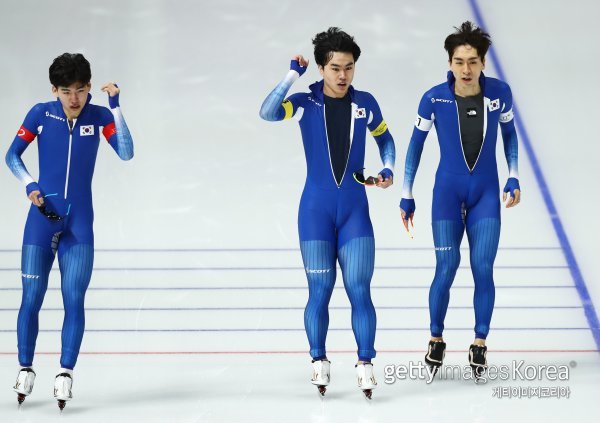 이승훈(30·대한항공)-김민석(19·성남시청)-정재원(17·동북고)으로 구성된 대표팀은 8개팀, 4개조로 편성된 준준결승에서 2조에 속해 경기를 치렀다. 유럽의 다크호스 이탈리아를 상대로 압도적 경기력을 보이며 3분39초29의 기록으로 결승선을 통과했다. 400m 트랙 8바퀴, 총 3200m를 도는 레이스에서 첫 바퀴를 17초68로 마친 대표팀은 이후 꾸준히 랩타임 13초대를 유지하는 안정적 경기운영능력을 보여줬다. 대표팀은 1조에서 경기를 치른 노르웨이의 종전 1위 기록(3분40초09)을 0.80초차로 경신하며 새롭게 1위로 올라섰다. 이후 남은 2개조, 4개팀(3조 일본·캐나다/4조 네덜란드·미국)이 레이스를 펼쳤지만, 한국의 3분39초29를 뛰어넘지 못했다. 한국은 8팀 중 상위 4팀에 주어지는 준결승행 티켓을 1위 자격으로 거머쥐며 기분 좋은 출발을 알렸다.