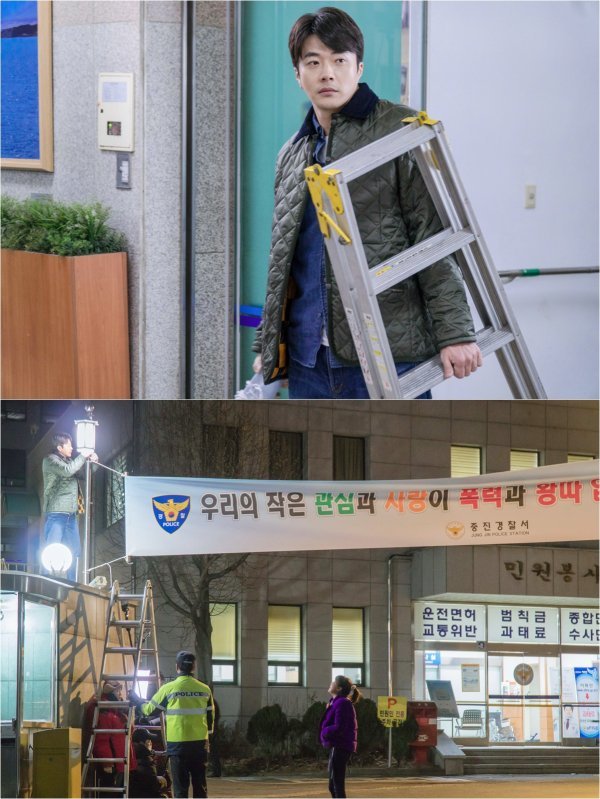 그런가 하면 공개된 사진 속 하완승(권상우 분)은 양손에 사다리와 현수막을 들고 믿음직스럽게 경찰서를 나서 눈길을 끈다. 특히 초소 위에 올라 직접 현수막을 달고 있는 모습이 단숨에 시선을 강탈하고 있다고.