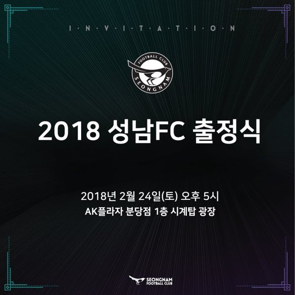 성남은 24일(토) 오후 5시부터 분당 AK플라자(서현역 위치) 1층 시계탑 광장에서 2018시즌의 시작을 알리는 출정식을 진행한다. 오픈형 공간으로 성남FC를 응원하는 팬이라면 누구나 참여하여 선수단과 함께하는 출정식을 즐길 수 있다.