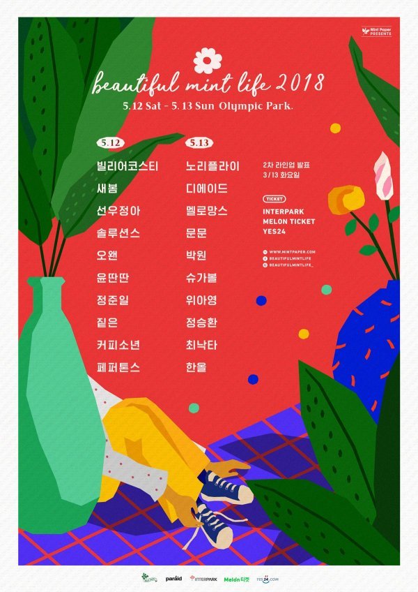 뷰티풀 민트 라이프 2018(Beautiful Mint Life / 뷰민라)의 1차 라인업 20팀이 공개됐다. 이미 사전 할인 티켓인 \'I♥뷰민라(아이러브뷰민라)\'가 오픈과 동시에 매진되면서 이번 뷰민라2018에 대한 기대가 컸던 만큼 여기에 부응하는 알찬 라인업이라는 평이다.