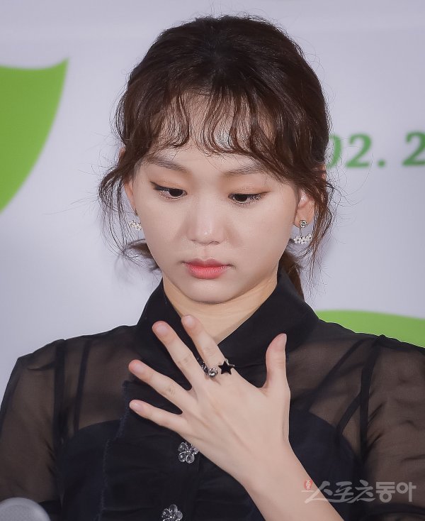 배우 진기주가 20일 서울 중구 메가박스 동대문에서 열린 영화 ‘리틀 포레스트’ 언론시사회 겸 기자간담회에서 자신의 손가락을 응시하고 있다.