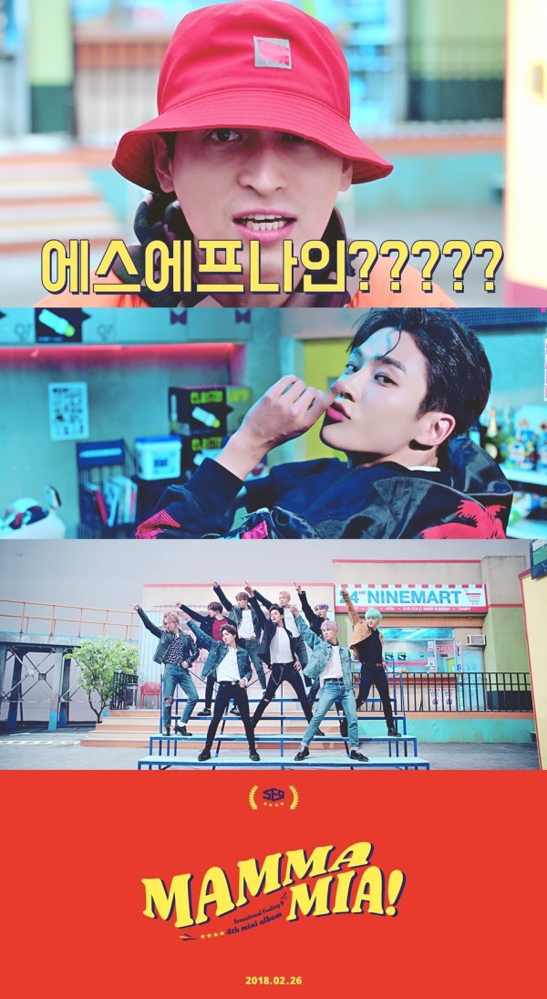 SF9 멤버들은 하이틴 뮤지컬 주인공으로 변신해 신나는 레트로 댄스곡인 ‘맘마미아’를 배경으로 발랄하고 유쾌한 군무를 선보이며 역대급 컴백을 예고했다. 특히 ‘Olleh Mamma Mia 널 보면 Mamma Mia’ ‘내 심장이 뜨거워져’ 등 톡톡 튀는 가사와 리듬감 넘치는 레트로 사운드가 두 귀를 사로잡는다.