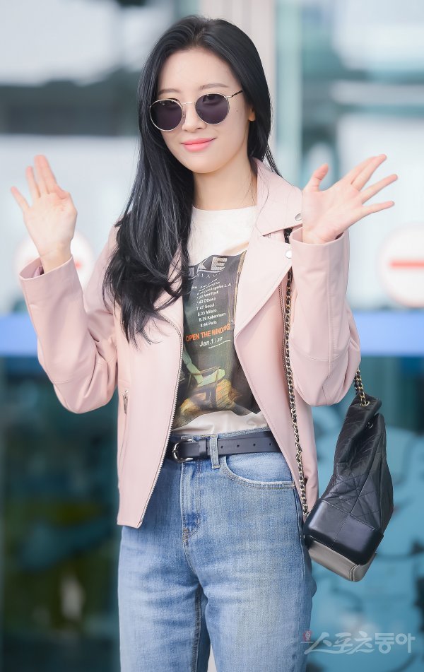 가수 선미가 해외 일정으로 21일 인천국제공항 제1여객터미널을 통해 이탈리아 로마로 출국했다. 선미가 출국장에서 포즈를 취하고 있다.