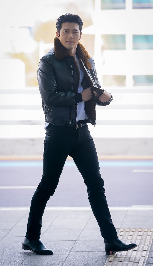 배우 현빈이 해외 일정으로 21일 인천국제공항 제2여객터미널을 통해 이탈리아 밀라노로 출국했다. 현빈이 출국장에서 포즈를 취하고 있다.