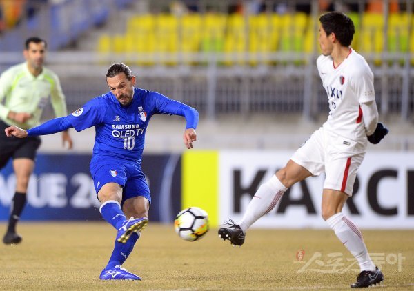 21일 수원월드컵경기장에서 2018 AFC 챔피언스리그 H조 수원삼성과 가시마 엔틀러스의 경기가 열렸다. 전반 수원삼성 데얀이 강력한 슈팅을 때리고 있다.