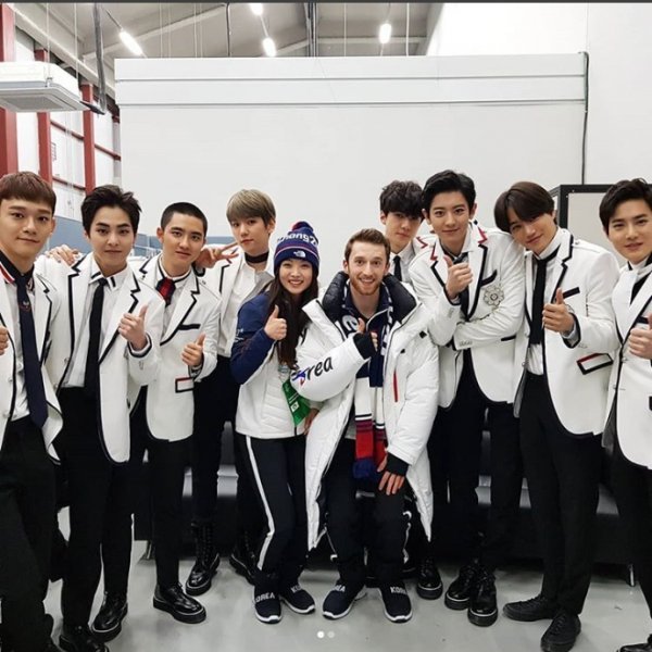 민유라는 26일 인스타그램에 단체샷과 함께 "이런 일이 일어날 수 있게 해준 올림픽 정말 고마워요!"라는 글을 남겼다. 또 엑소의 친필 사인이 담긴 앨범 사진을 인증했다.