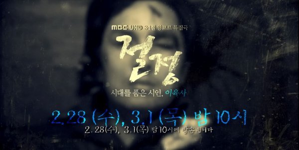 MBC는 삼일절을 맞아 2011년 방송됐던 드라마 ‘절정’(극본 황진영, 연출 이상엽)을 UHD로 특별 편성하여 오늘(28일)과 3월 1일 연속 방송한다.