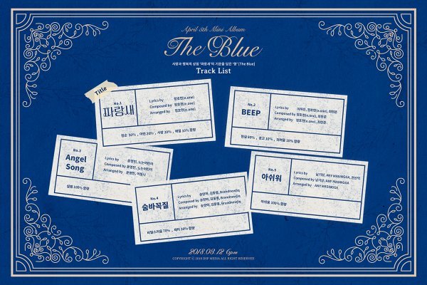 그룹 에이프릴이 새 미니앨범 \'The Blue\'의 트랙리스트를 공개했다.
