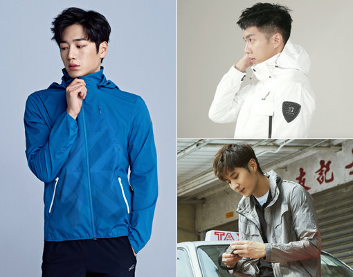 봄 시즌을 맞아 아웃도어 브랜드들이 ‘젊은 얼굴’을 내세워 소비자들의 관심끌기에 나서고 있다. 사진은 밀레의 새 모델 서강준, 블랙야크의 이승기, 나우의 김지석(왼쪽부터 시계 방향으로). 사진제공|밀레·블랙야크·나우