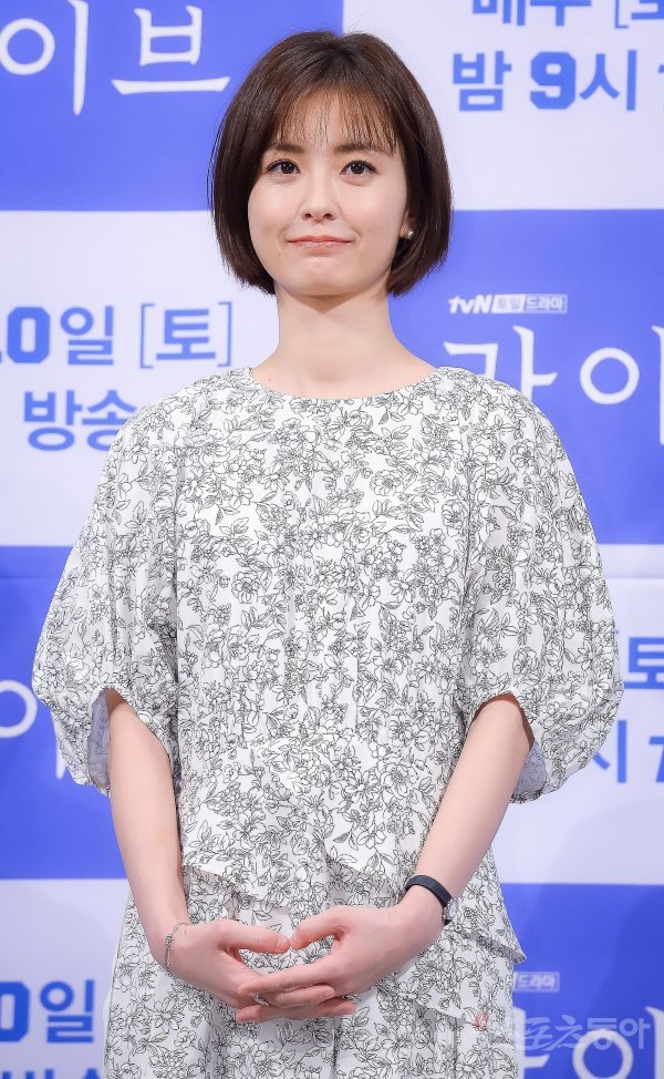 배우 정유미가 6일 서울 강남구 논현동 임피리얼 팰리스 호텔에서 열린 tvN 새 토일드라마 ‘라이브’ 제작발표회에 참석해 포즈를 취하고 있다.