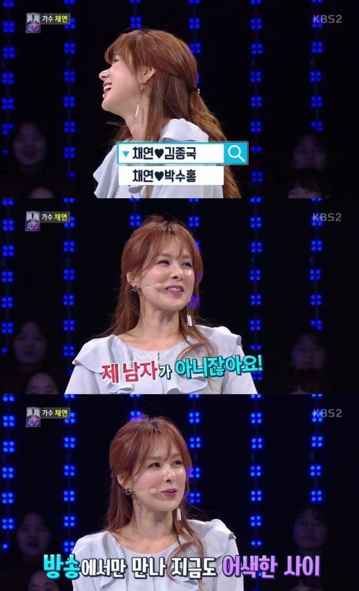 이어 채연은 “김종국과 예능 러브라인이 있지 않았나?”라는 물음에 “그건 내 남자가 아니다. 내가 팬이었던 거지 연락하는 사이도 아니다. 지금도 어색하고 서먹서먹하다”라고 밝혔다.